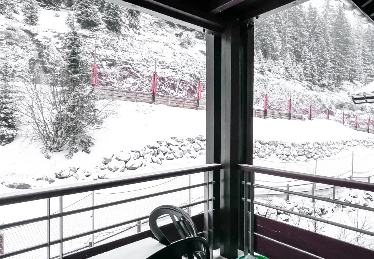 Extérieur : Détendez-vous sur votre balcon privé, parfait pour profiter de l'air frais de la montagne.
