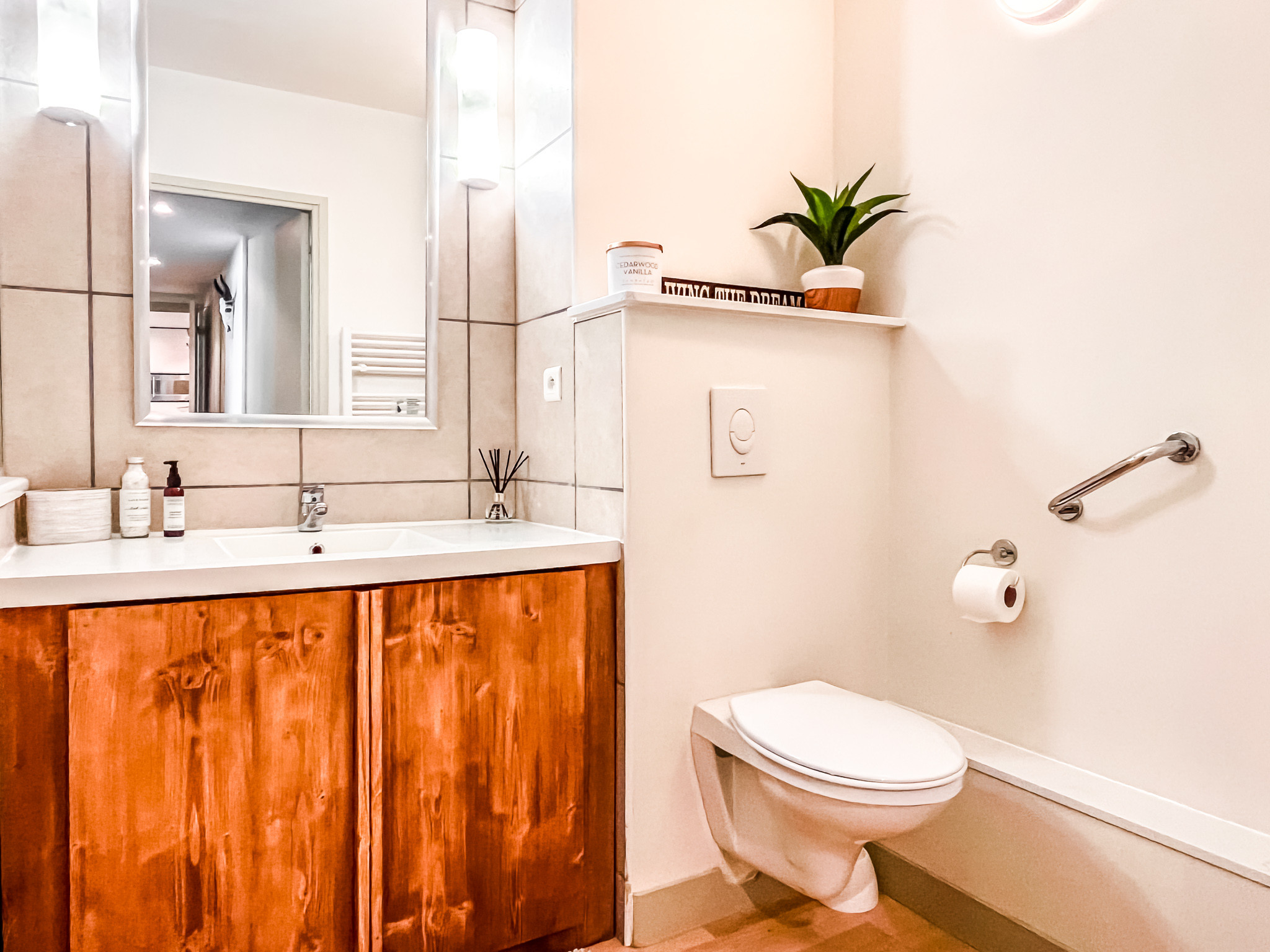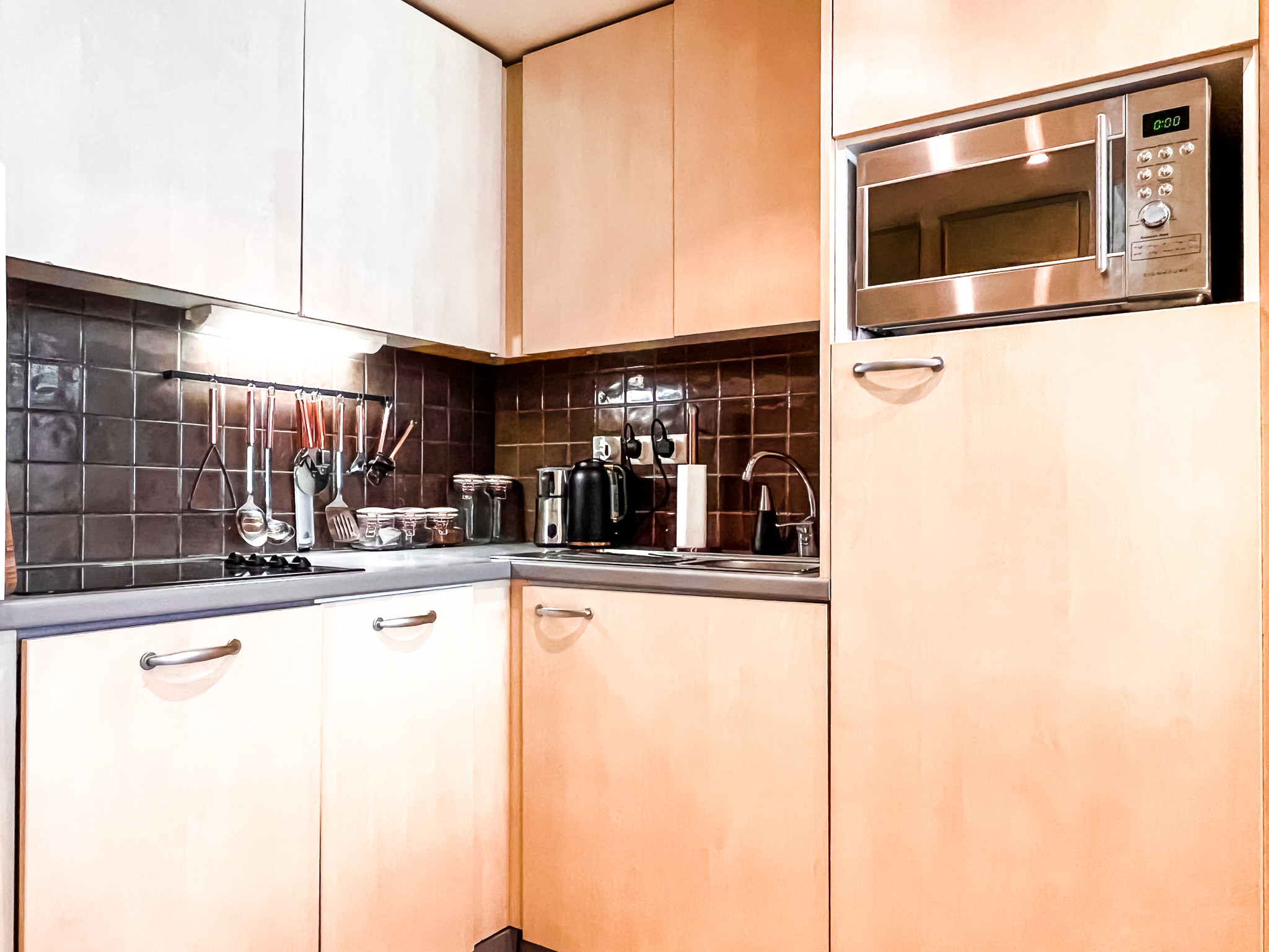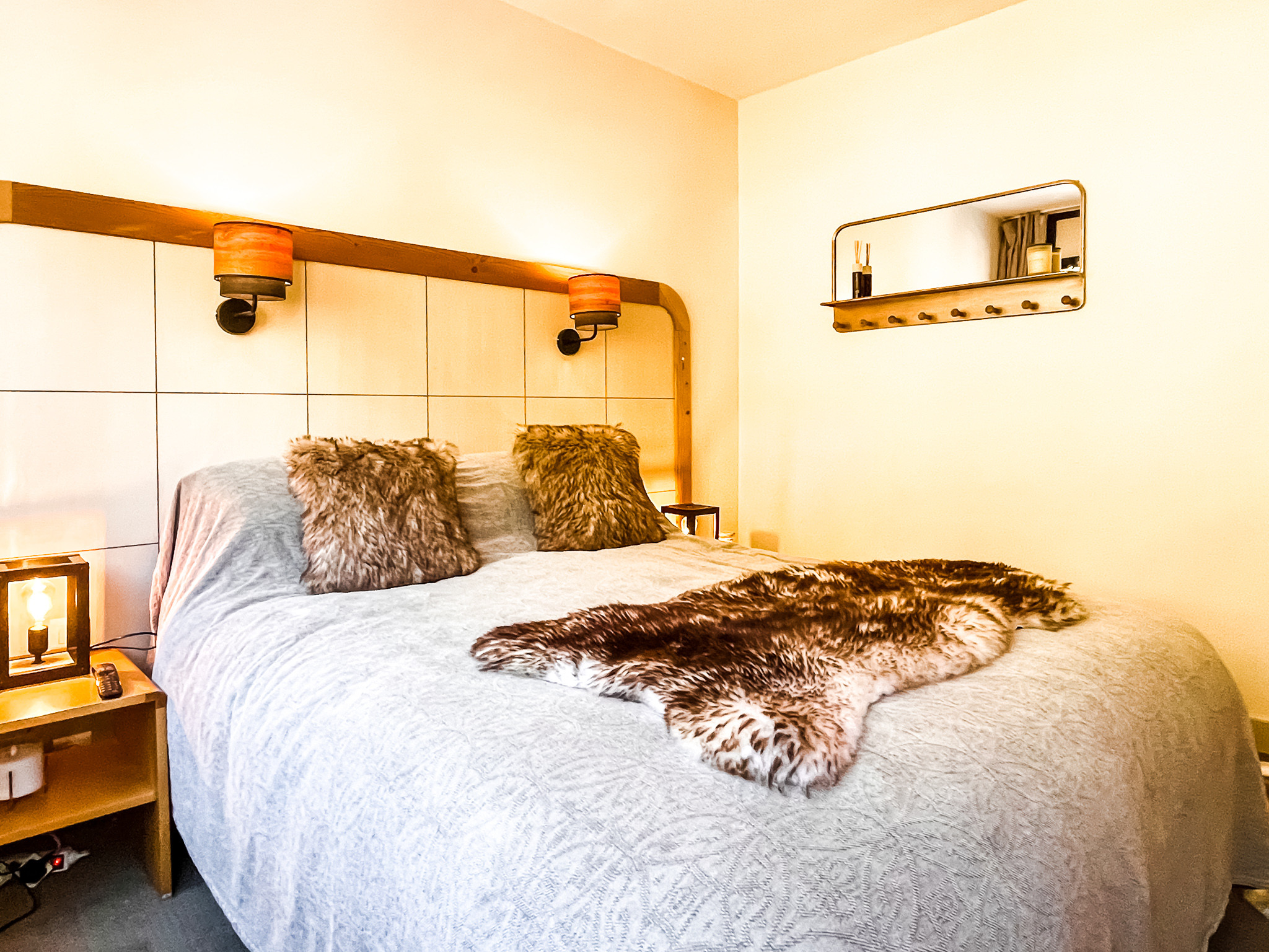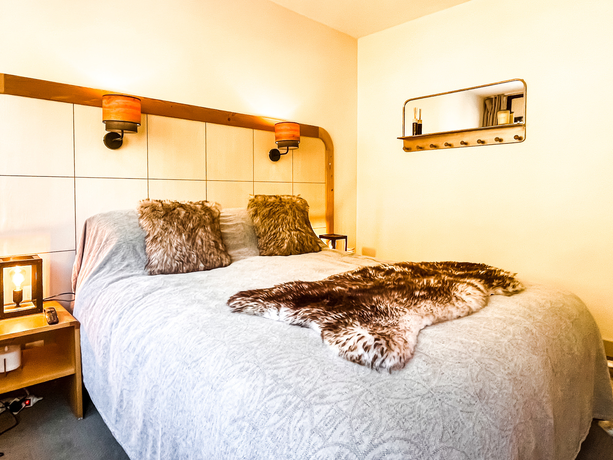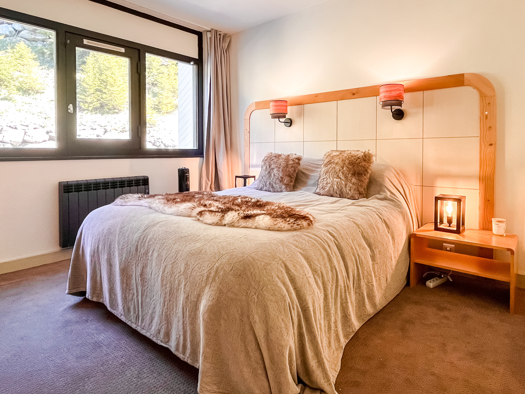 L'appartement comprend une chambre double, une chambre twin, une salle de bains avec WC, une salle de douche et un WC indépendant, un salon spacieux avec canapé lit et une cuisine bien équipée et fonctionnelle.