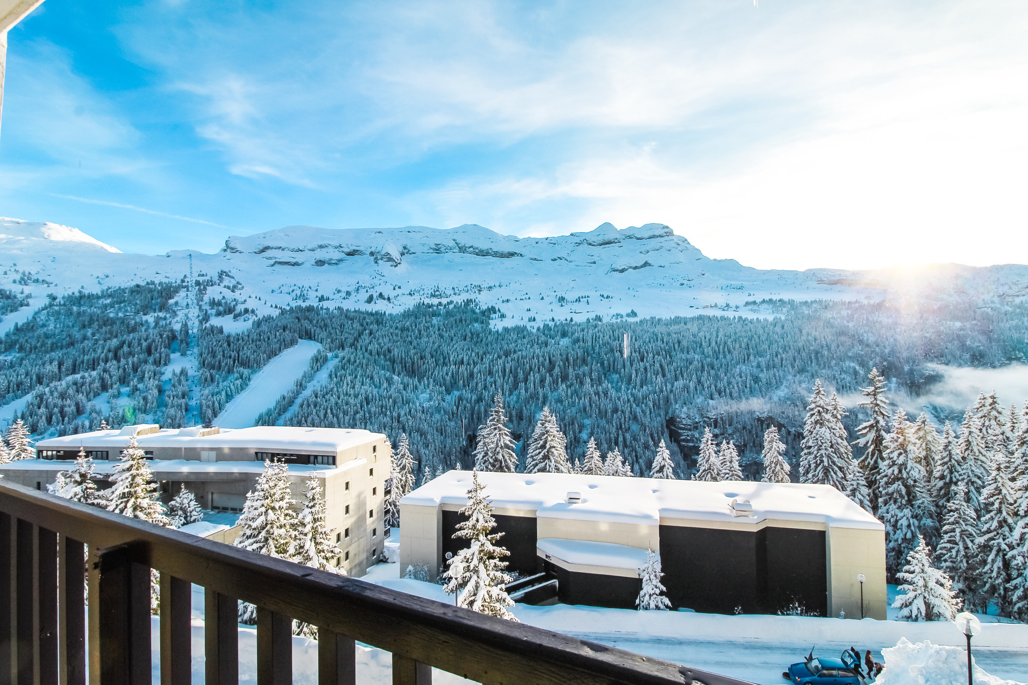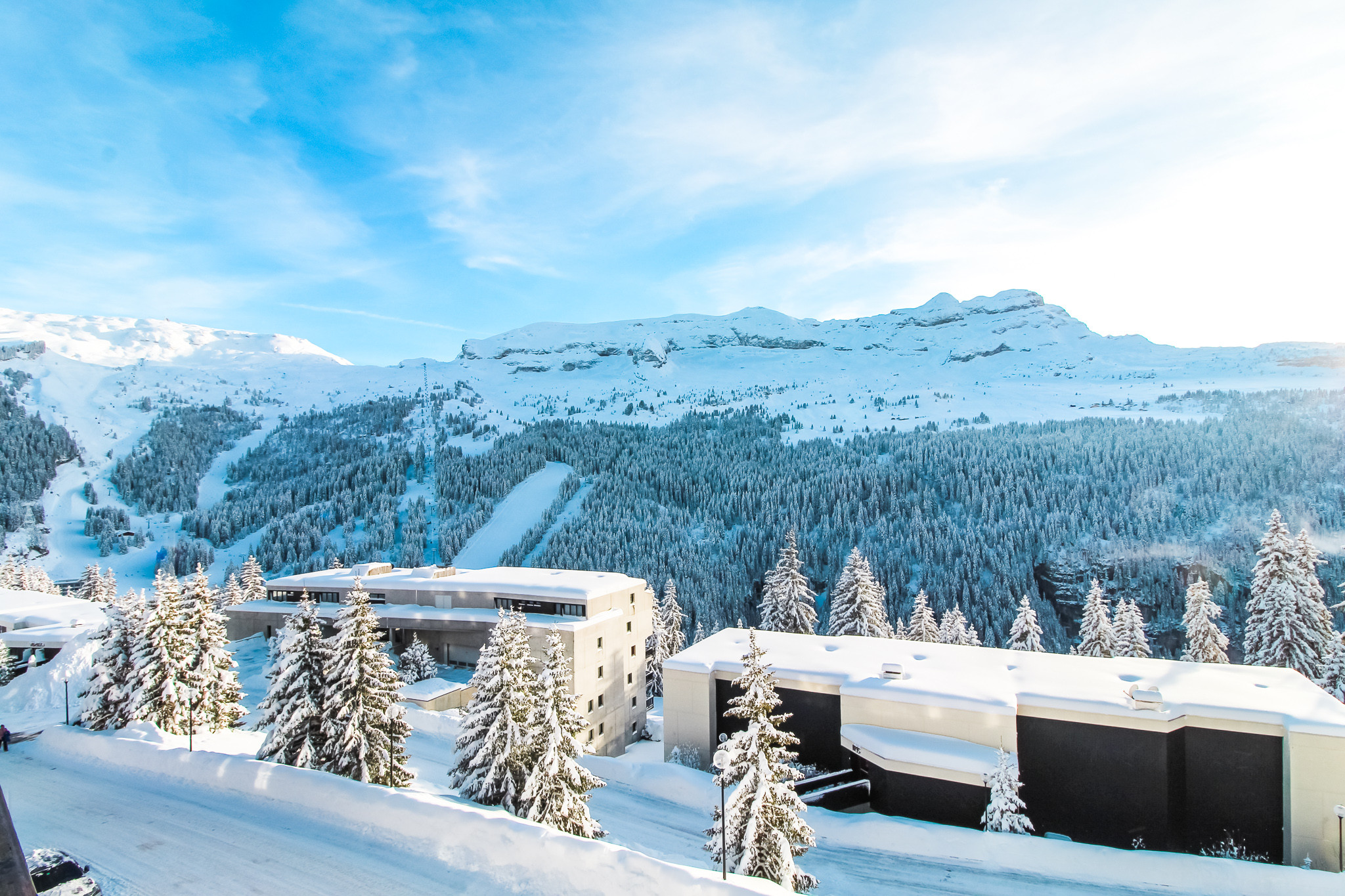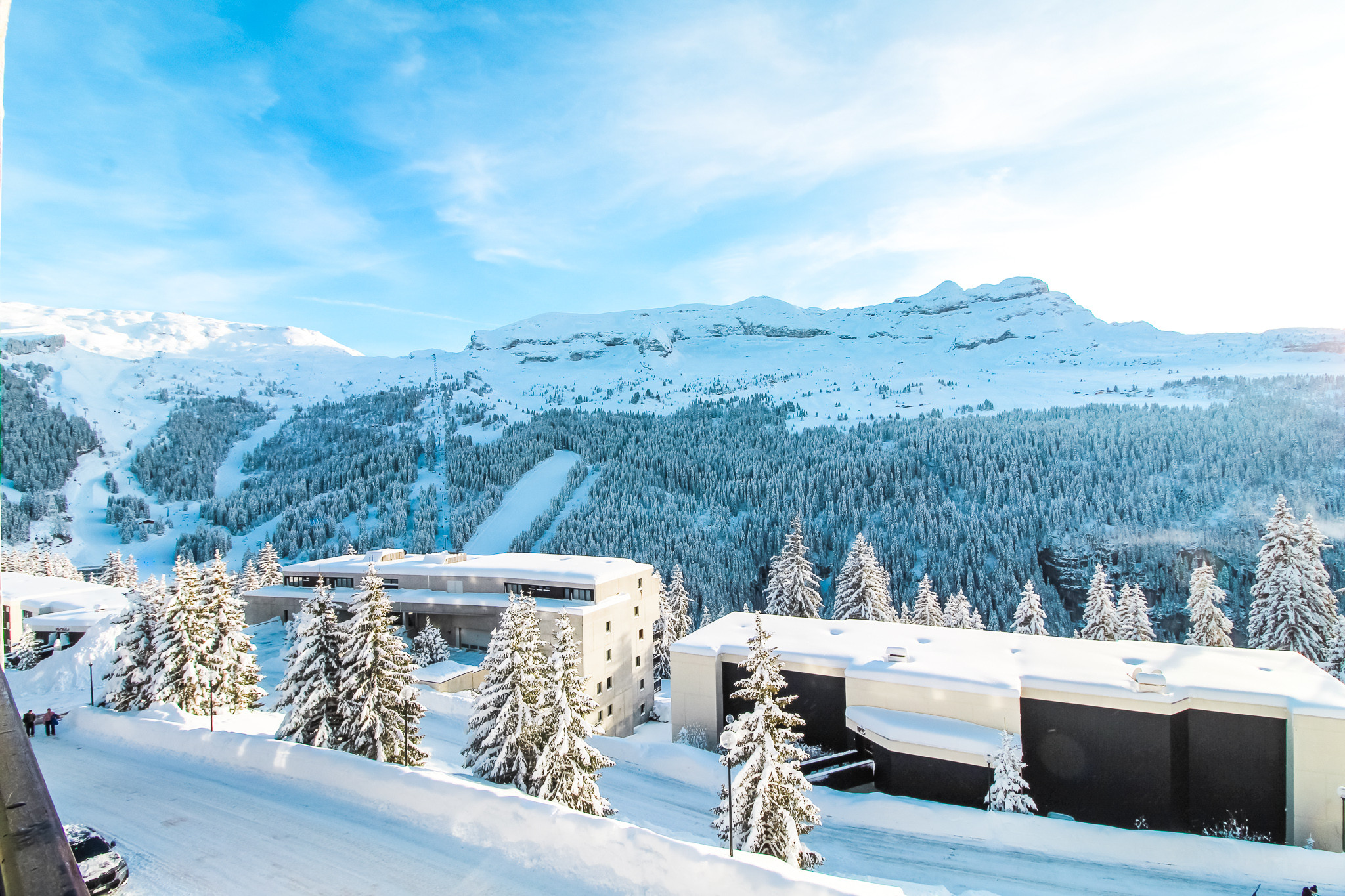 Situé juste en face de l’arrêt de la navette de ski et à quelques pas seulement du télésiège des Gérats, vous pourrez rejoindre les pistes en quelques minutes. Pour l'après-ski et vos besoins quotidiens, le centre commercial de Flaine Forêt est accessible via une courte marche facile.